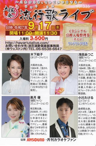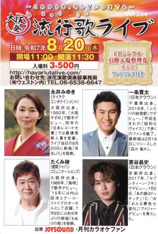 | 資料提供 ;Music news jp 続きを読む→大阪発流行歌ライブ・8月ライブ |