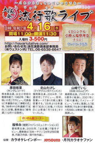 | 料提供;Music news jp 続きを読む→大阪発流行歌ライブ・4月ライブ |