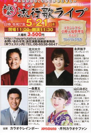 | 資料提供;Music news jp 続きを読む→大阪発流行歌ライブ・5月ライブ |