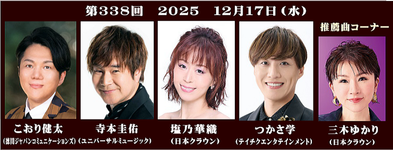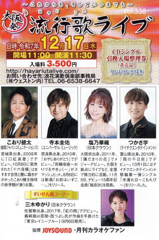 | 資料提供:Music news jp 続きを読む➡大阪発流行歌ライブ・12月ライブ(Music news JP 曾崎重之) |